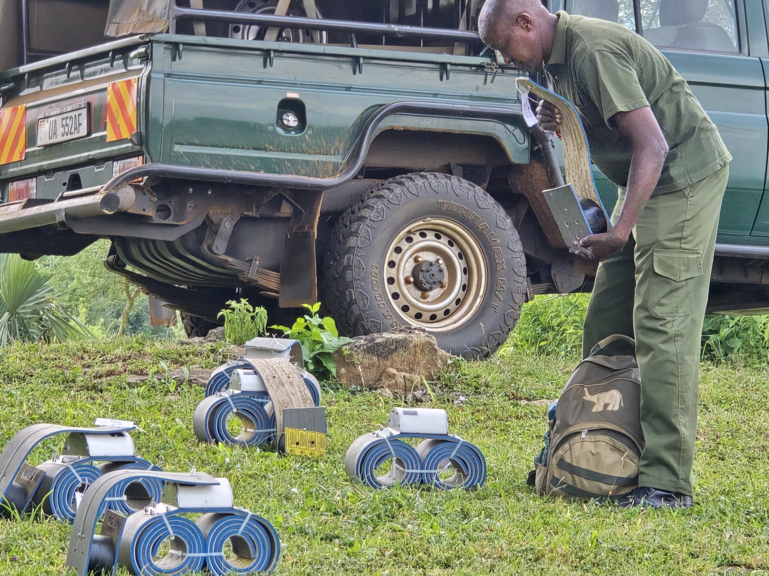 But even the best-laid plans were tested by Kidepo’s giants and challenging landscape. Of the 16 elephants collared, six were bulls. Massive individuals, significantly larger than their Samburu counterparts! Several of the bulls were too big for standard collars, so the team had to modify the collars on site to comfortably fit their enormous necks.